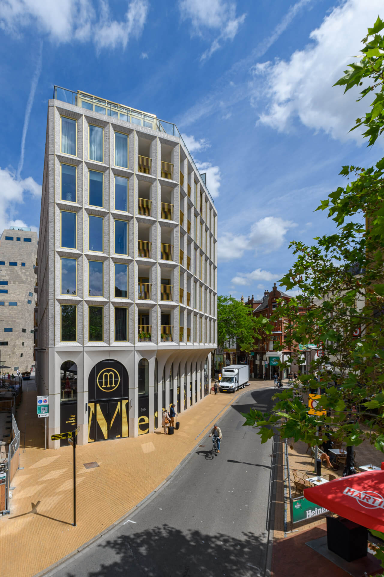 Merckt liegt am Markt, im historischen Stadtzentrum von Groningen. Die sorgfältig zusammengestellte Farbpalette und die charakteristischen Bögen wurden von den Architekten der Powerhouse Company in Anlehnung an die nahe gelegenen Martinitoren entworfen. Um den Bau logistisch zu ermöglichen, wurden die Fassaden von Hibex vorgefertigt. Im Auftrag von Plegt Vos lieferten wir maßgefertigte Steinstreifen mit genau dem richtigen Farbenspiel.